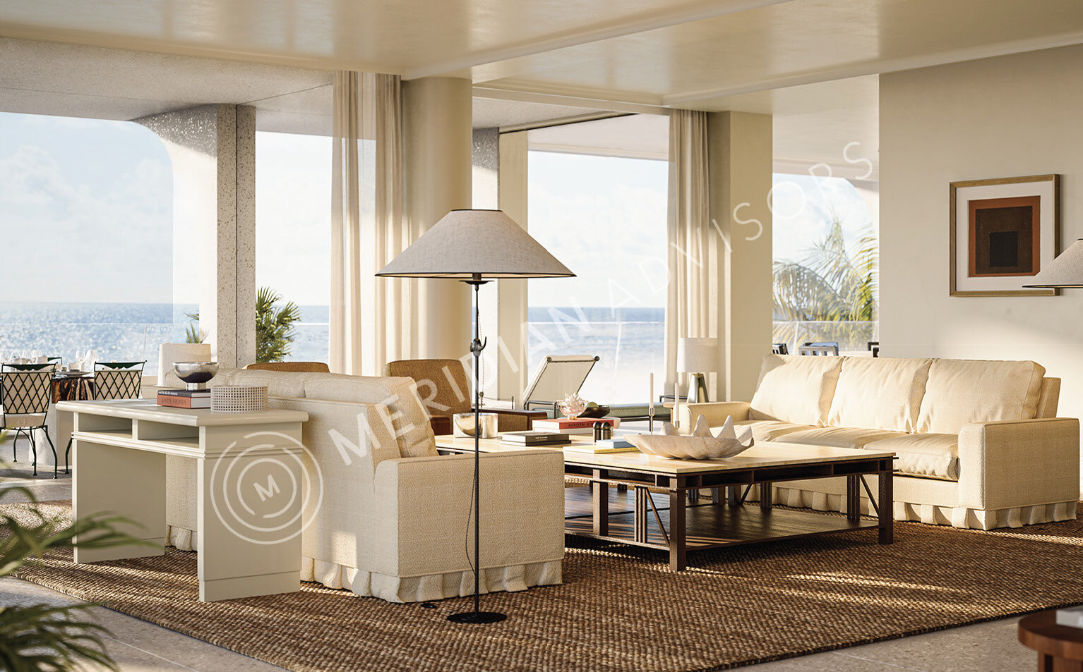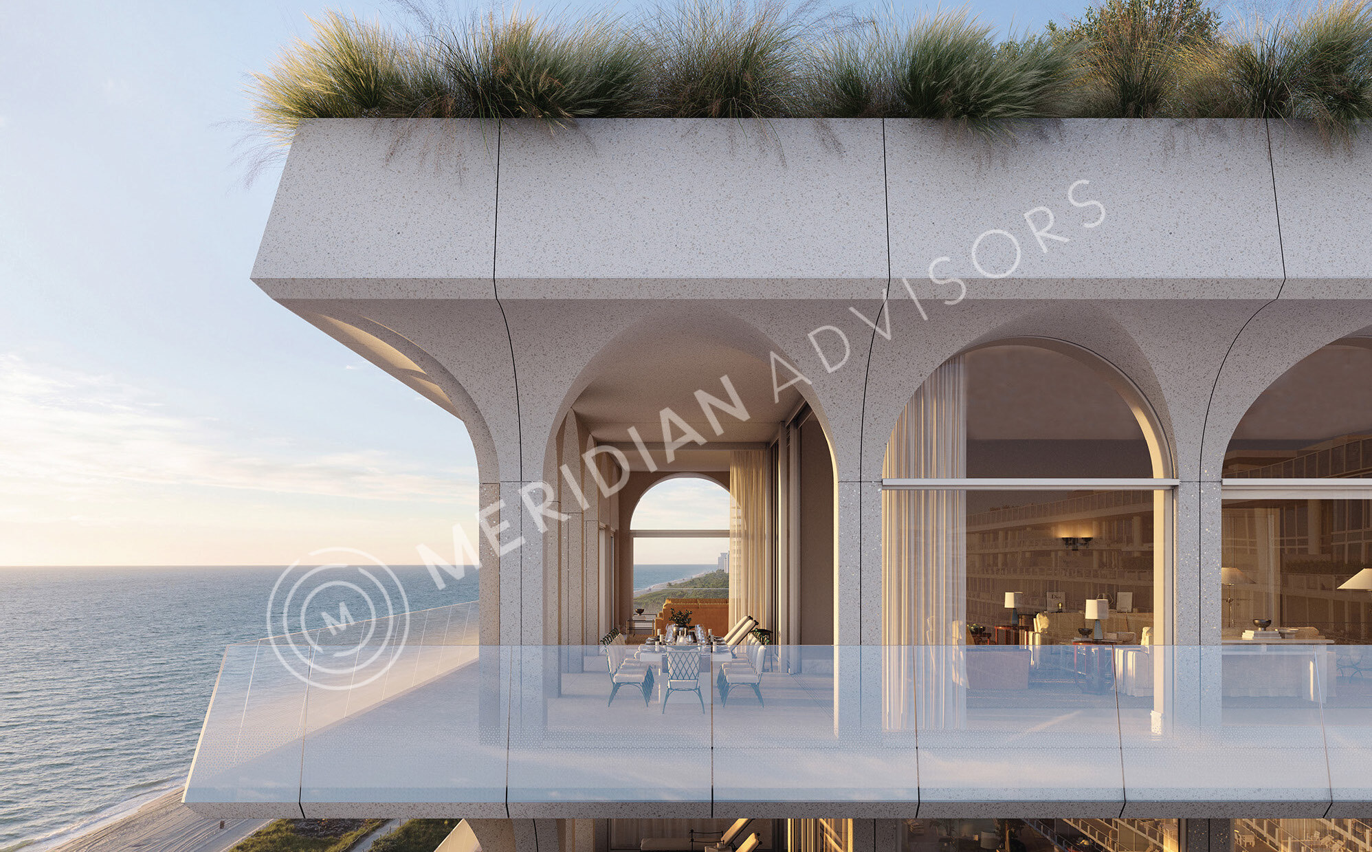 Surf House is the latest luxury addition to The Surf Club, located on a pristine stretch of the Atlantic coastline with over 1,350 linear feet of beach. Conceived by New York-based French architect Jerome Engelking, this residential tower harmoniously blends modern design with the historic elegance of the original 1965 building. The architecture features gracefully curved alabaster arches, palm-shaped columns, and terrazzo cladding, all meticulously integrated to create a timeless and sophisticated aesthetic. The seventeen residences, designed by Paris-based Italian architect Fabrizio Casiraghi, showcase a refined European style with generous proportions and high-quality natural materials like fine woods, stones, and glass. These elements cultivate a serene environment with expansive coastal views and a connection to the surrounding natural beauty.